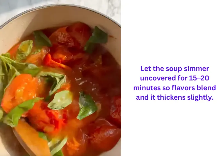 - Simmer Soup: Let the soup simmer uncovered for 15–20 minutes so flavors blend and it thickens slightly.
