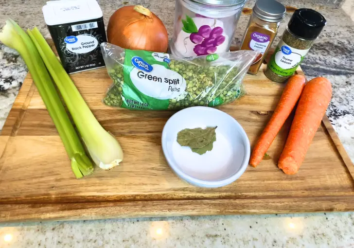 - 1 bag dried split peas – The star of the recipe. Use fresh, good-quality split peas for the creamiest texture. Generic store brands work perfectly; just be sure to rinse and sort them well.