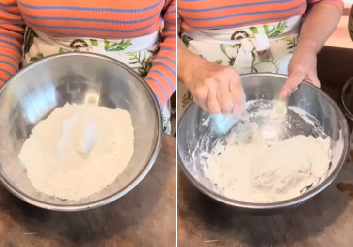 Place 2 heaping cups of self-rising flour into a mixing bowl.