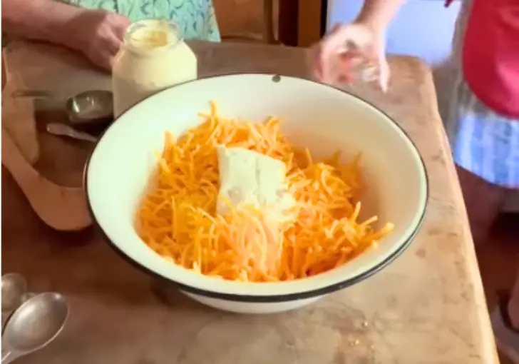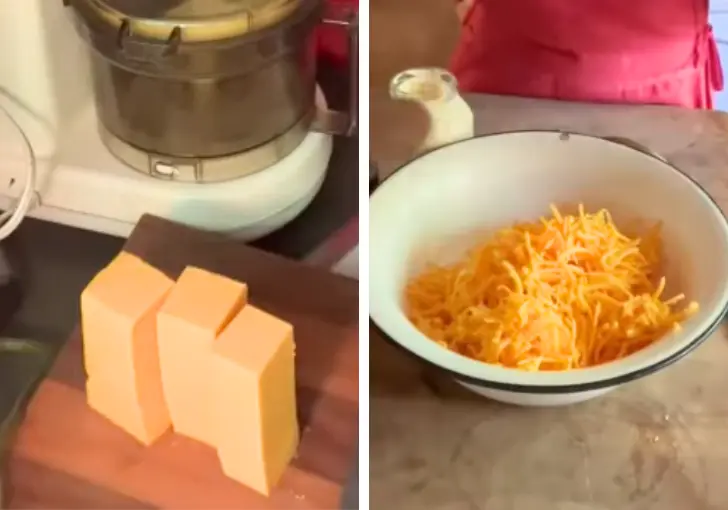1. Grate the Cheeses – Cut 16 oz extra sharp cheddar and 8 oz mild cheddar into chunks and shred them using a food processor or hand grater, then place in a large mixing bowl.