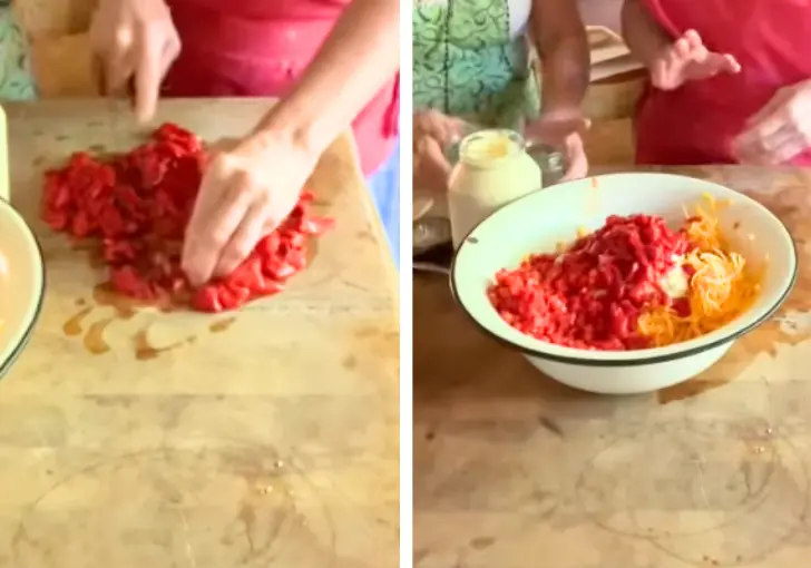 3. Prepare and Add the Pimentos – Drain two 7-ounce jars of diced pimentos and add them to the cheese mixture.