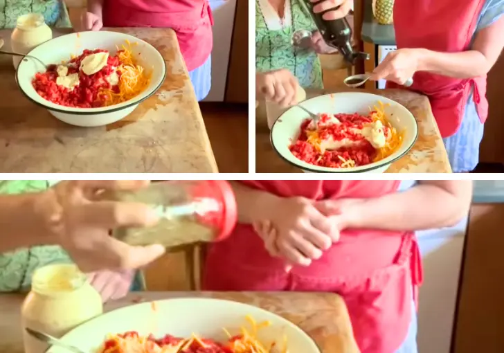 5. Add Mayo, Worcestershire, and Pepper – Stir in ¼ cup mayonnaise, 2 tablespoons Worcestershire sauce, and a dash of black pepper.