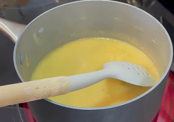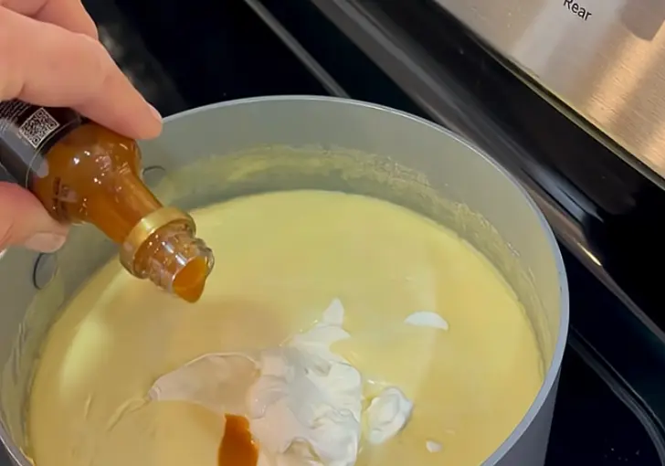 - Pour in the heavy whipping cream. Stir until the mixture becomes smooth and begins to thicken into a velvety base.