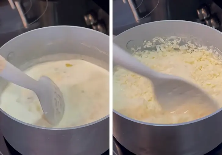 - Using pre-shredded cheese — It can become stringy or grainy because of added anti-caking agents.