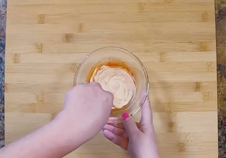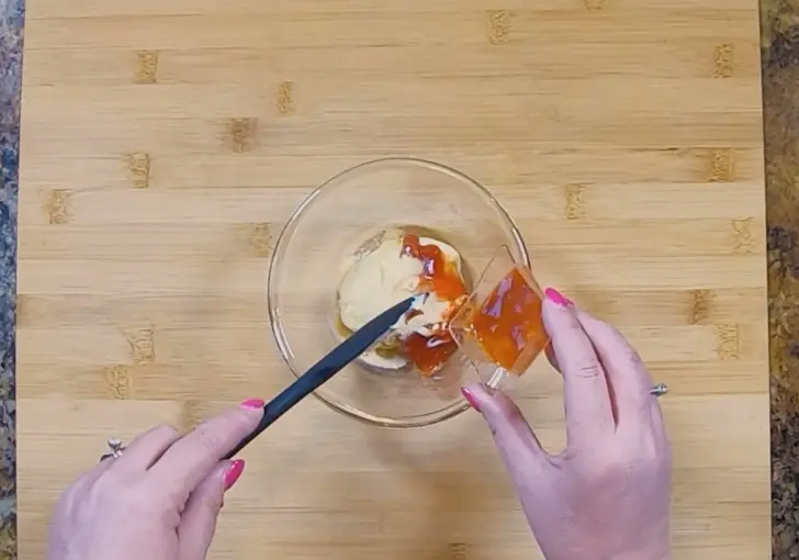 - Prepare the Base: Place ½ cup mayonnaise into a mixing bowl and smooth it out.