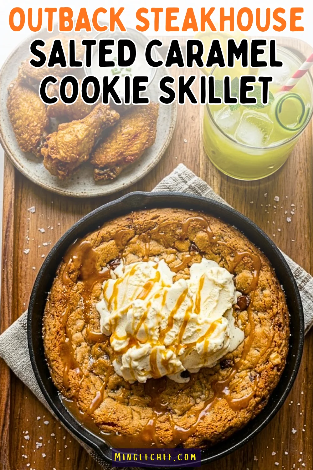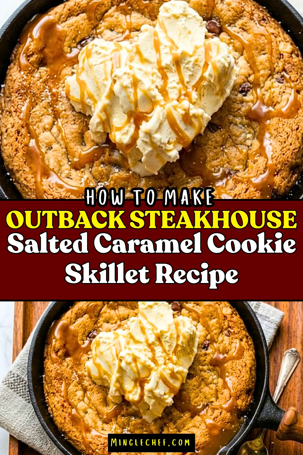 If you’ve ever ordered the Outback Salted Caramel Cookie Skillet at the restaurant, you know exactly what I’m talking about—that warm, crispy cookie straight from the skillet with melting vanilla ice cream and caramel sauce all over it. Pure magic. Well, I figured out how to make it at home, and honestly, it’s even better than what they serve.