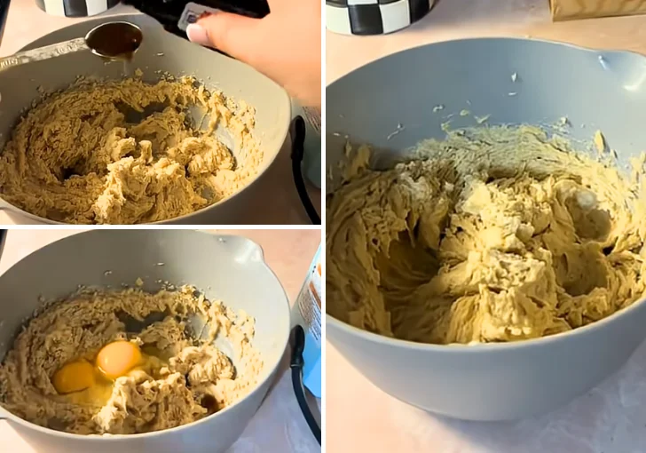 Crack in your eggs one at a time, mixing after each addition, then pour in the vanilla. You want a creamy, unified base—no eggy streaks hiding anywhere. This stage smells like sugary heaven already.