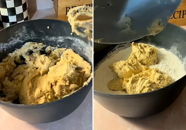 Now add the wet ingredients into your flour bowl. Mix on low until you have a thick, cohesive cookie dough. The dough will be luscious—soft yet firm enough to hold a spoon upright. Don’t overmix; think “just until flour disappears.”
