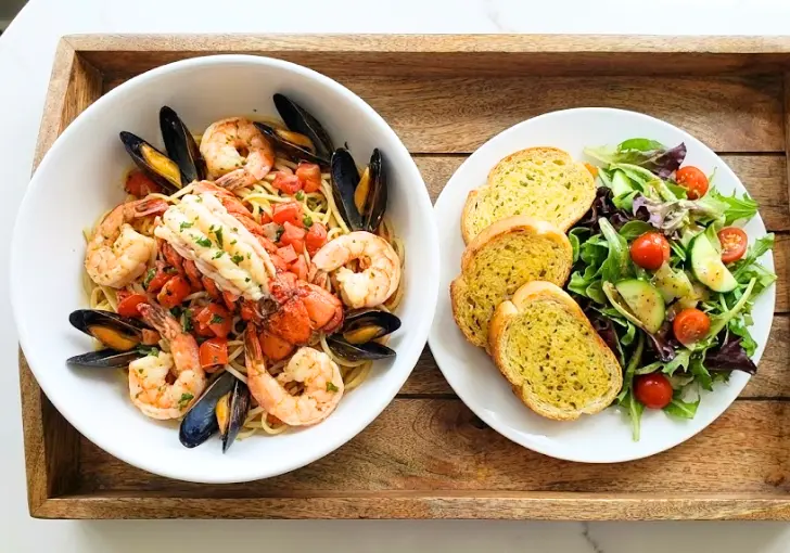 It’s one of those dishes people talk about long after the plate is empty, rich with garlic, white wine, and butter, layered with shrimp, scallops, mussels, and tender lobster all in one bowl. It feels indulgent, almost like a reward meal, something you order when you want the best thing on the menu.