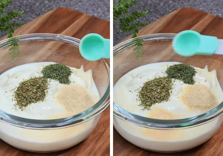 • 1 teaspoon garlic powder – Garlic powder blends smoothly into the base without sharpness. Fresh garlic is too aggressive for this style.